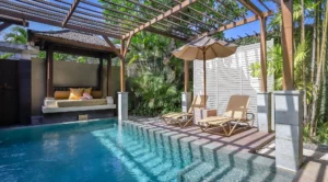 Un claustra blanche au design élégant et moderne, avec des lames horizontales