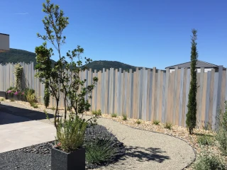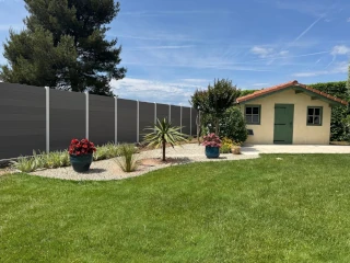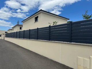 Une clôture élégante de couleur gris anthracite avec un plaxage soigné