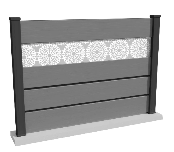 cloture-composite-brise-vue-gris-impression-arabesque-insert-barcelos