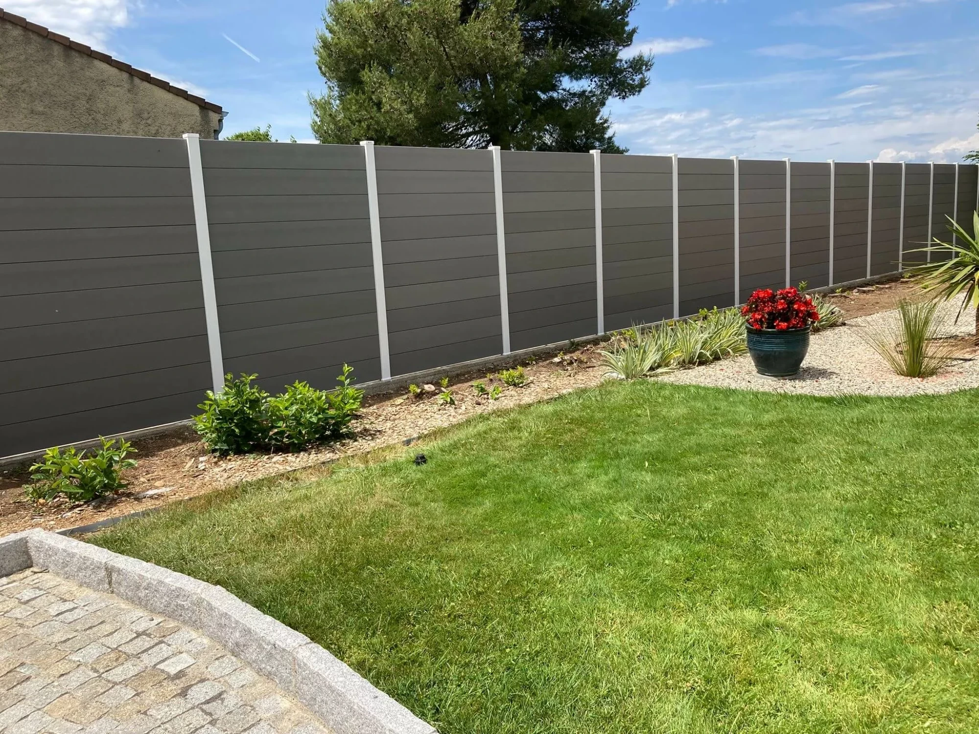 Dans les deux cas, la clôture agit comme un élément structurant fort, tout en s’intégrant naturellement à son environnement.