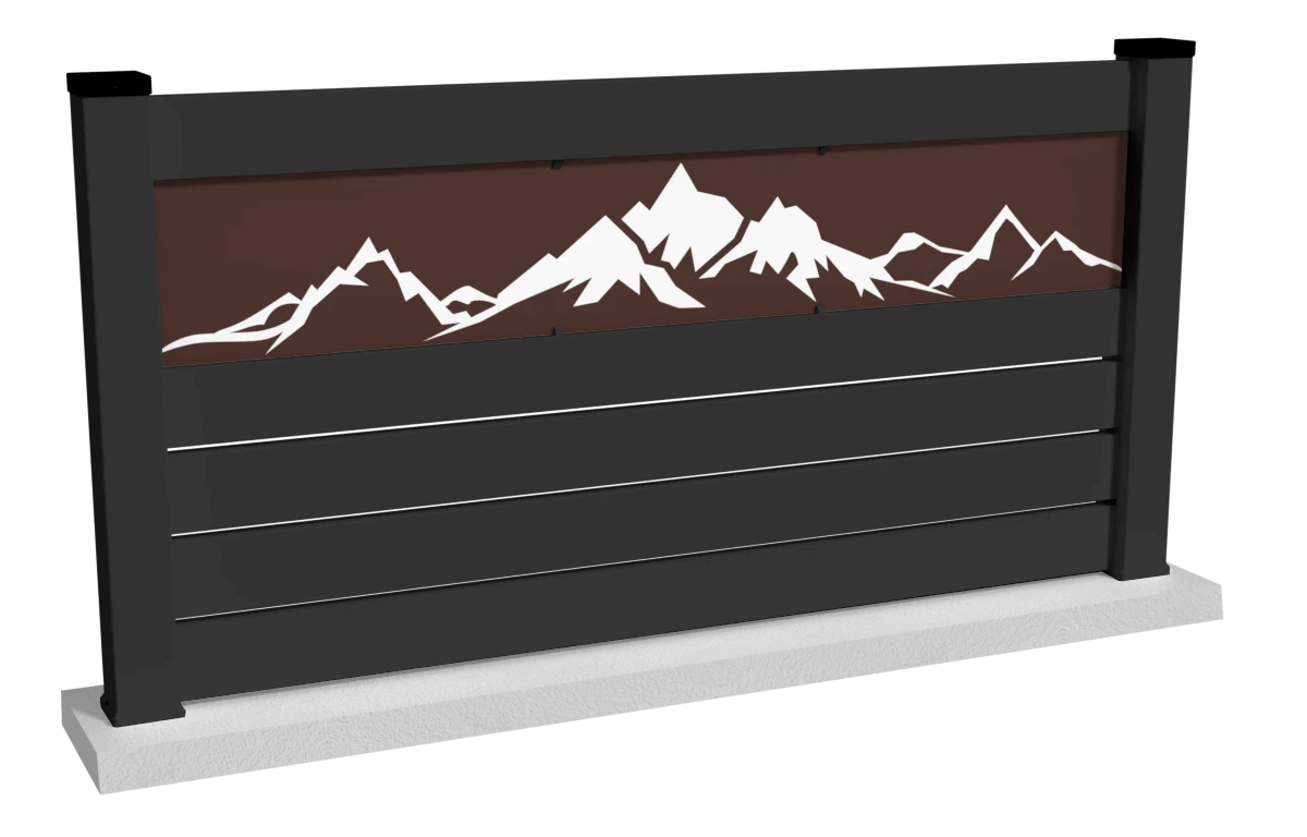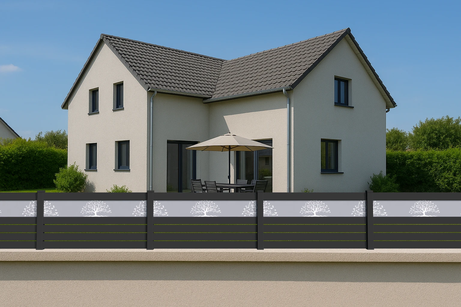 Le brise-vue Hématite se démarque avant tout par l’intégration d’un bandeau en composite aluminium, conçu pour accueillir de nombreux motifs imprimables (Feuillage, Tropiques, Hexagone, Bambou…). Cette spécificité vous offre la possibilité de concevoir une séparation visuellement unique. Pour sublimer ce rendu, la structure bénéficie d’une finition gris anthracite obtenue par un procédé de plaxage de haute précision. Cette technique consiste à thermocoller un film protecteur directement sur le profilé en PVC, garantissant une adhérence parfaite et une texture visuelle haut de gamme.