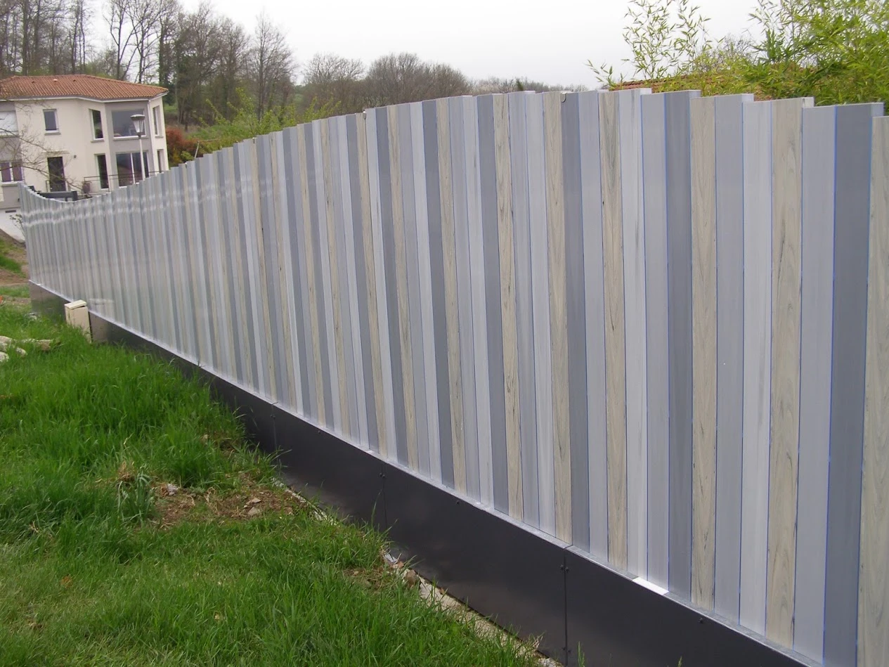 Des lames aux hauteurs variables et en plusieurs coloris pour une palissade design