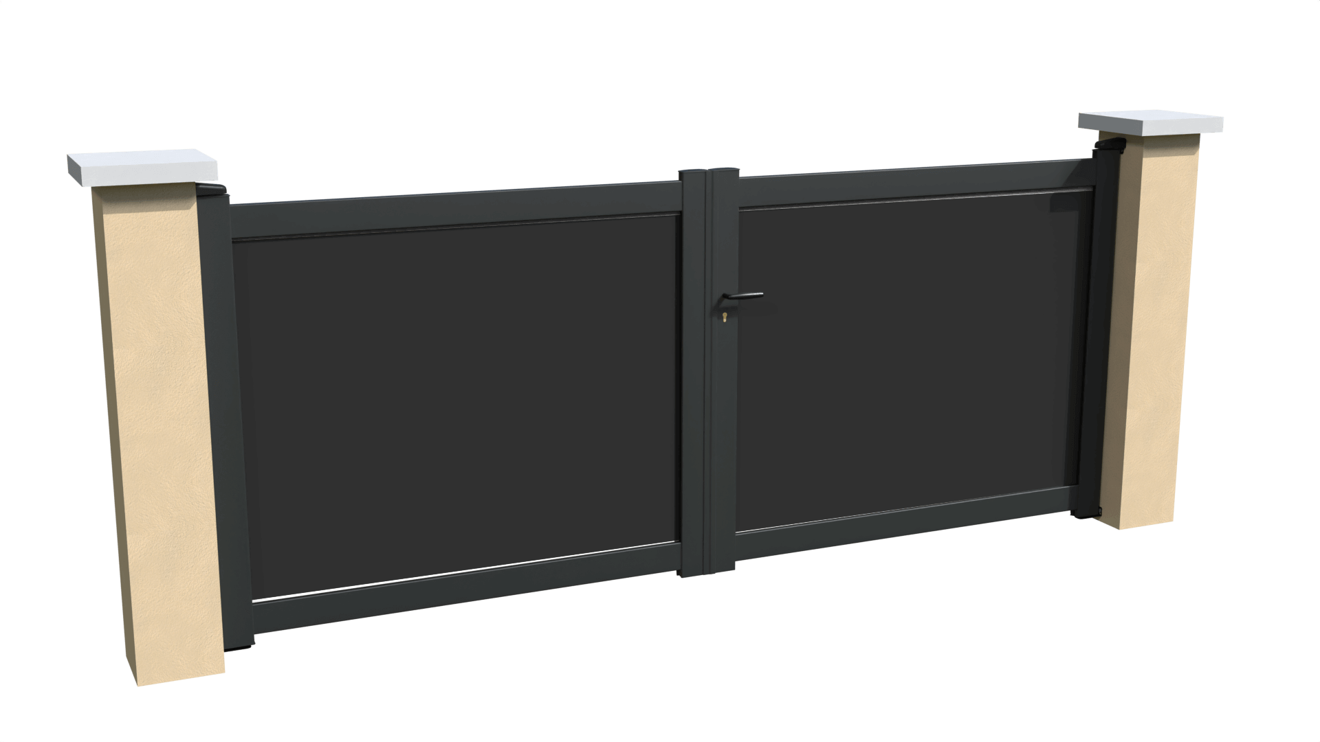 Notre modèle de portail battant Virtuose est une solution de fermeture occultante pour l'accès à votre propriété. Il s'agit d'un portail constitué d'un cadre en aluminium gris anthracite et d'un remplissage en composite aluminium. L'originalité de ce modèle, c'est sa personnalisation : c'est à vous de choisir les motifs d'impression qui viendront remplir le portail. Choisissez parmi les modèles d'impression disponible ou demandez-nous quelque chose d'encore plus unique : c'est vous le maestro !